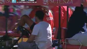 En un desborde contra Pillud, el defensor de Racing le ganó la posición y Escudero buscó enviar el centro pero le pegó al banderín. Salió en el carrito lesionado y al sentarse en el banco, se enojó por el cambio y le pidió explicaciones al entrenador.