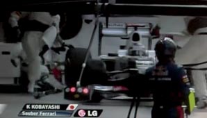 Kobayashi deberá abonar 25.000 euros después de atropellar a mecánicos de su equipo cuando entró al sector de boxes para el recambio de cubiertas.