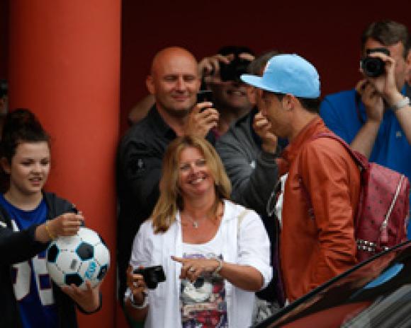 Vestido con una chaqueta de cuero y una llamativa gorra de color azul celeste, el astro de Madeira llegó esta mañana y generó una gran expectación entre los aficionados de la localidad lusa de Óbidos, a 80 kilómetros al norte de Lisboa, donde se concentra la selección de ‘las quinas‘ para preparar el Mundial de Brasil.