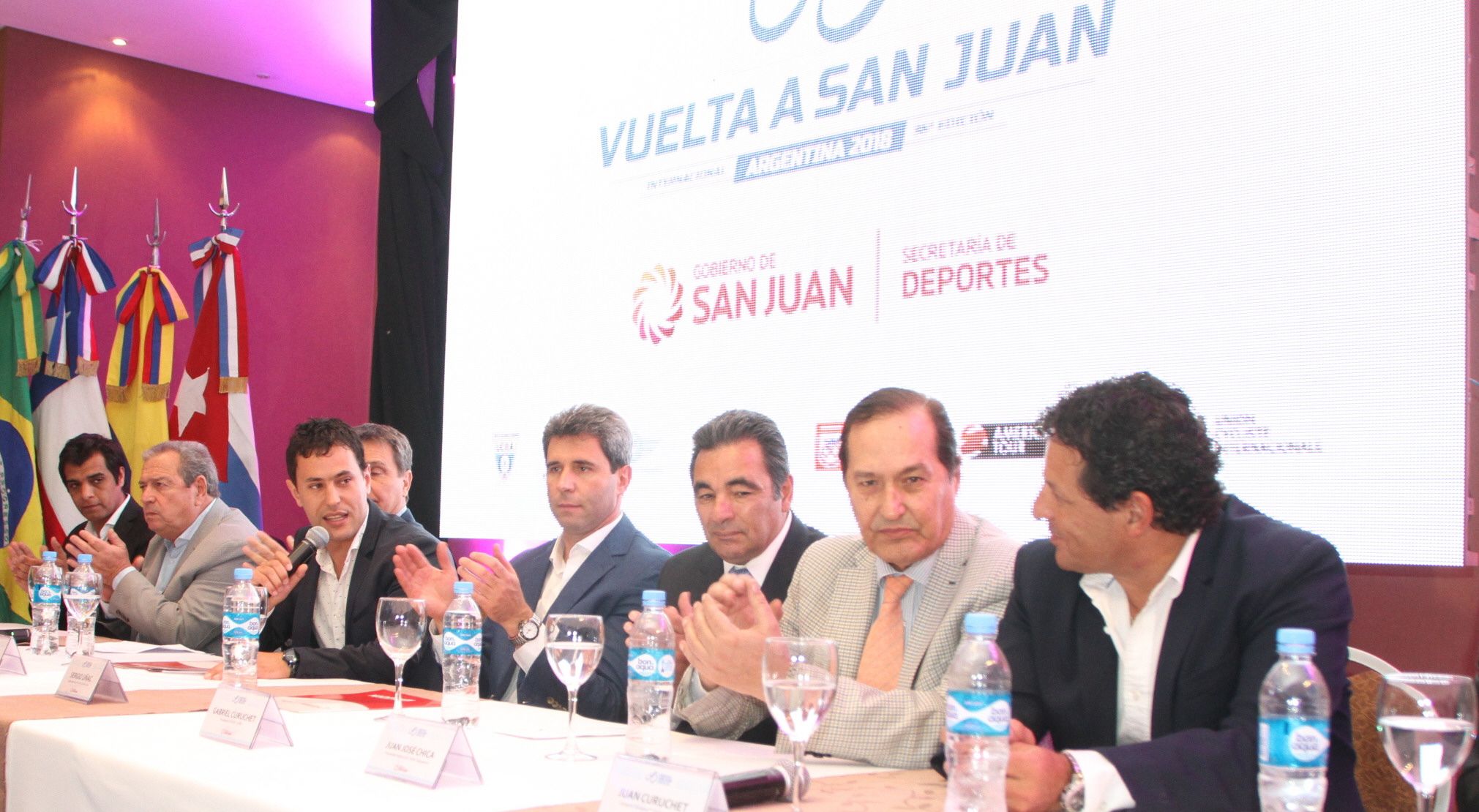 Tras la proyección de un video institucional en el que se destacó la actividad diaria que tendrá la carrera, mostrando los recorridos de etapa, los integrantes de la mesa destacaron la jerarquía internacional que ha ganado la carrera. Mientras la mayoría de las alocuciones se relacionaron con agradecimientos mutuos, fue la palabra de Amadio la más esperada, porque en su carpeta se guardaba bajo siete llaves la nómina de conjuntos que disputarán la competencia y se esperaba, con especial expectativa, cual sería el séptimo conjunto de la categoría World Tour Team (WTT), anunció al de origen belga Lotto Soudal, y también cuales serían los nombres de las figuras que vendrían a la prueba (ver recuadro).