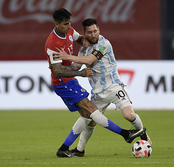 En la primera parte, todo el peso de ir a buscar corrió por el lado de Argentina. Con Di María de extremo derecho y Ocampos por la izquierda, el local empezó a trabajar su paciencia para circular la pelota, elegir el mejor pase y tratar de romper el férreo esquema chileno que armó dos líneas de cuatro bien pegadas y soltó solamente a Alexis Sánchez y el Turbo Vargas para aprovechar espacios en la contra. Hasta que a los 22" un pase de Di María para Lautaro Martinez forzó el error del grandote Maripan que se llevó puesto al ex Racing en el área. Penal que Messi, con enorme calidad, tradujo en gol definiendo al palo izquierdo de Bravo. Ese 1-0 abrió espacios, soltó más juego asociado y profundo en Argentina: De Paul tuvo una chance con un remate desviado. Argentina lo controlaba pero a los 36" un foul de Foyth derivó en un tiro libre que Medel buscó en el segundo palo para regalarle el gol a Sánchez que empató casi sin quererlo.
