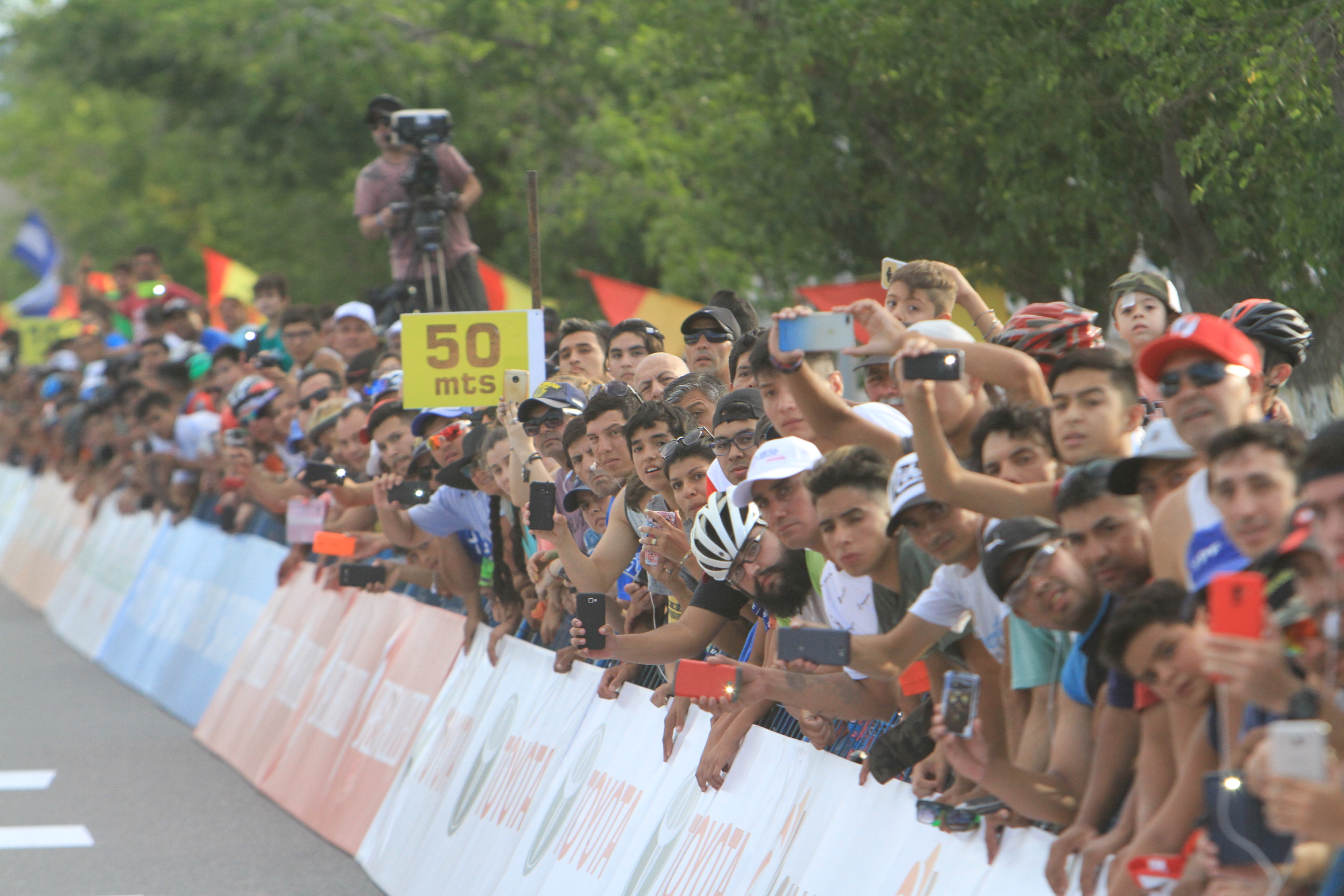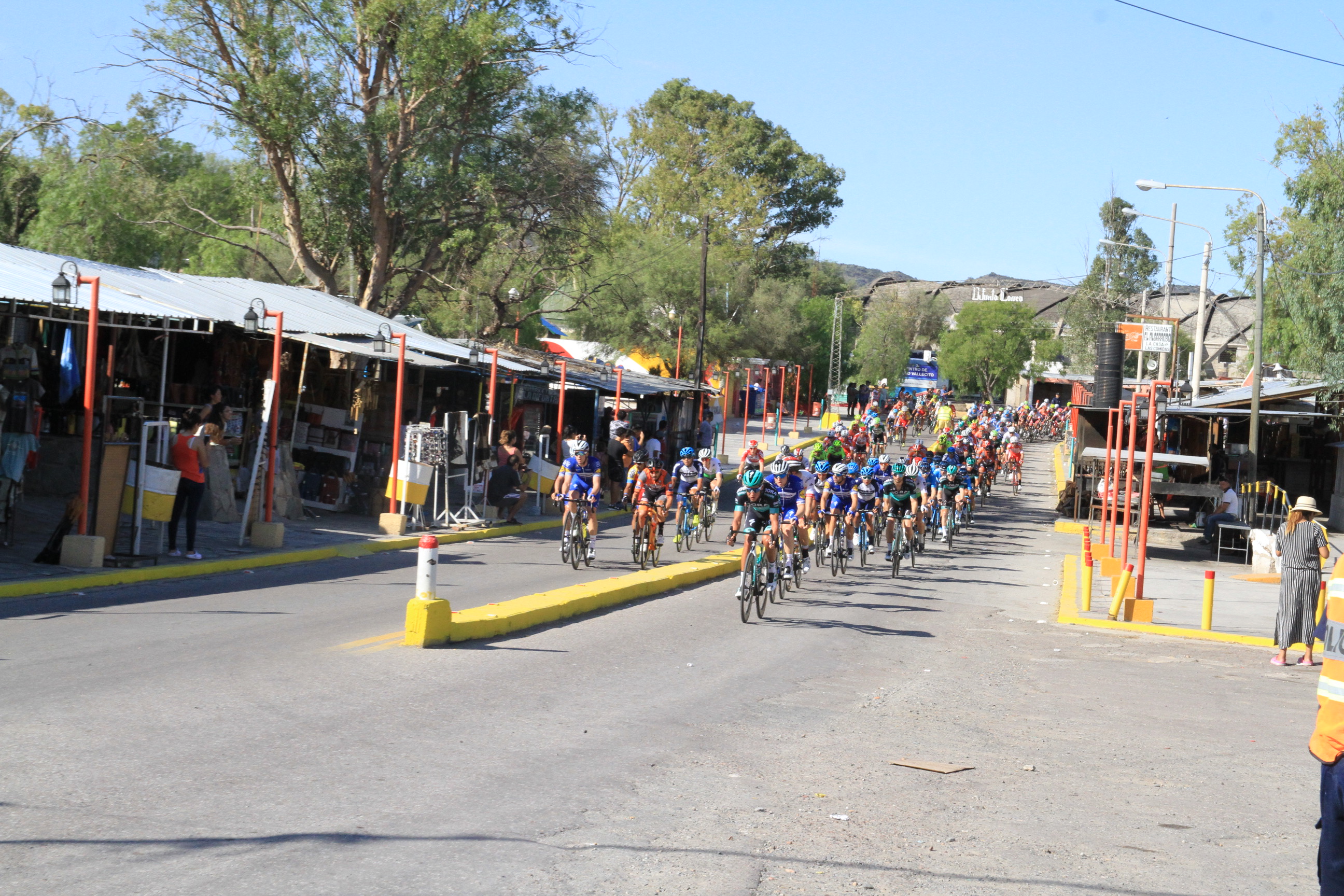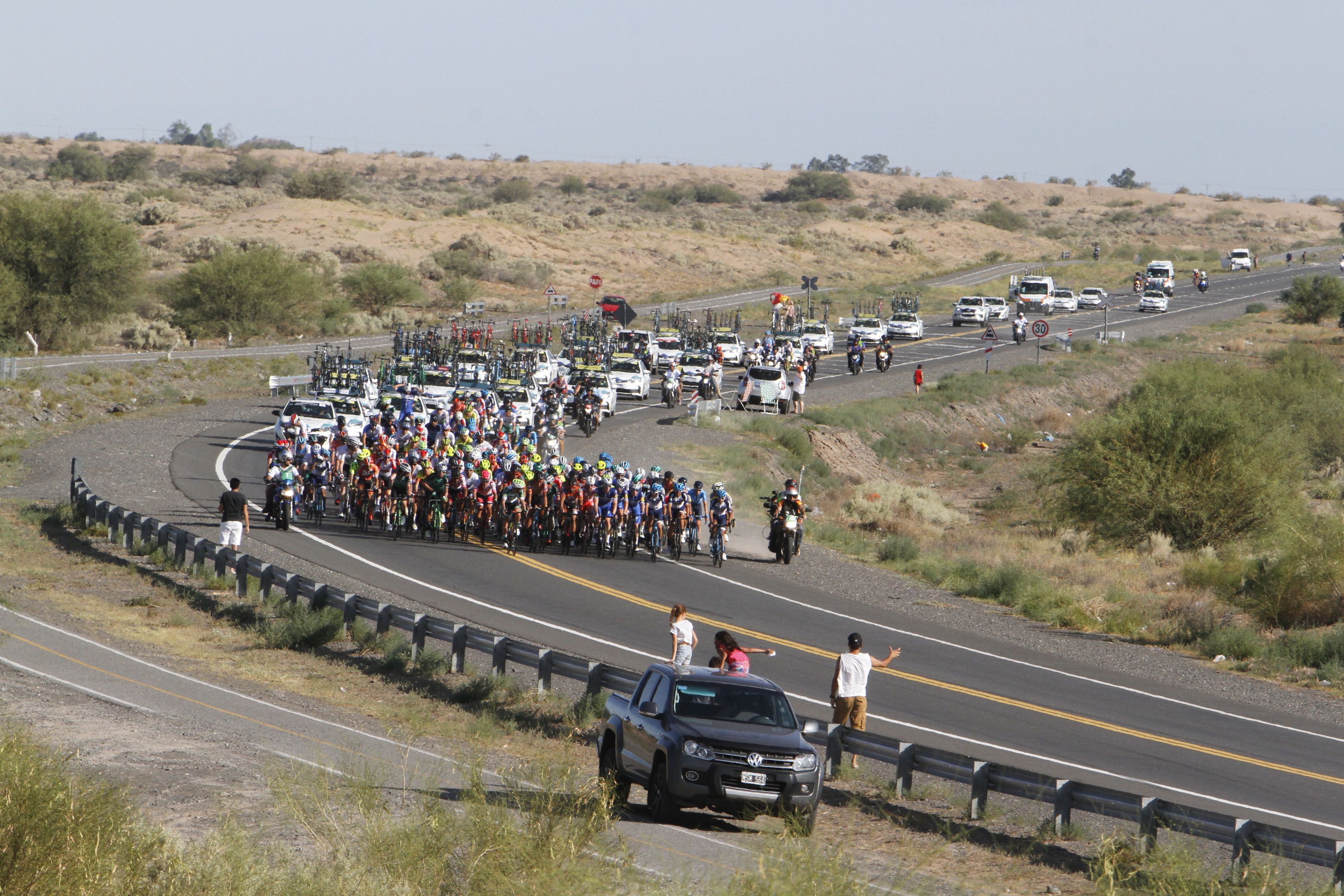 Enorme postal. El pelotón atraviesa uno de los badenes previo a llegar a Vallecito y el colorido de las camisetas le brindan al paisaje un marco más que especial. La Vuelta deja esto, además de la pasión de su gente: muestra al mundo sus increíbles paisajes.