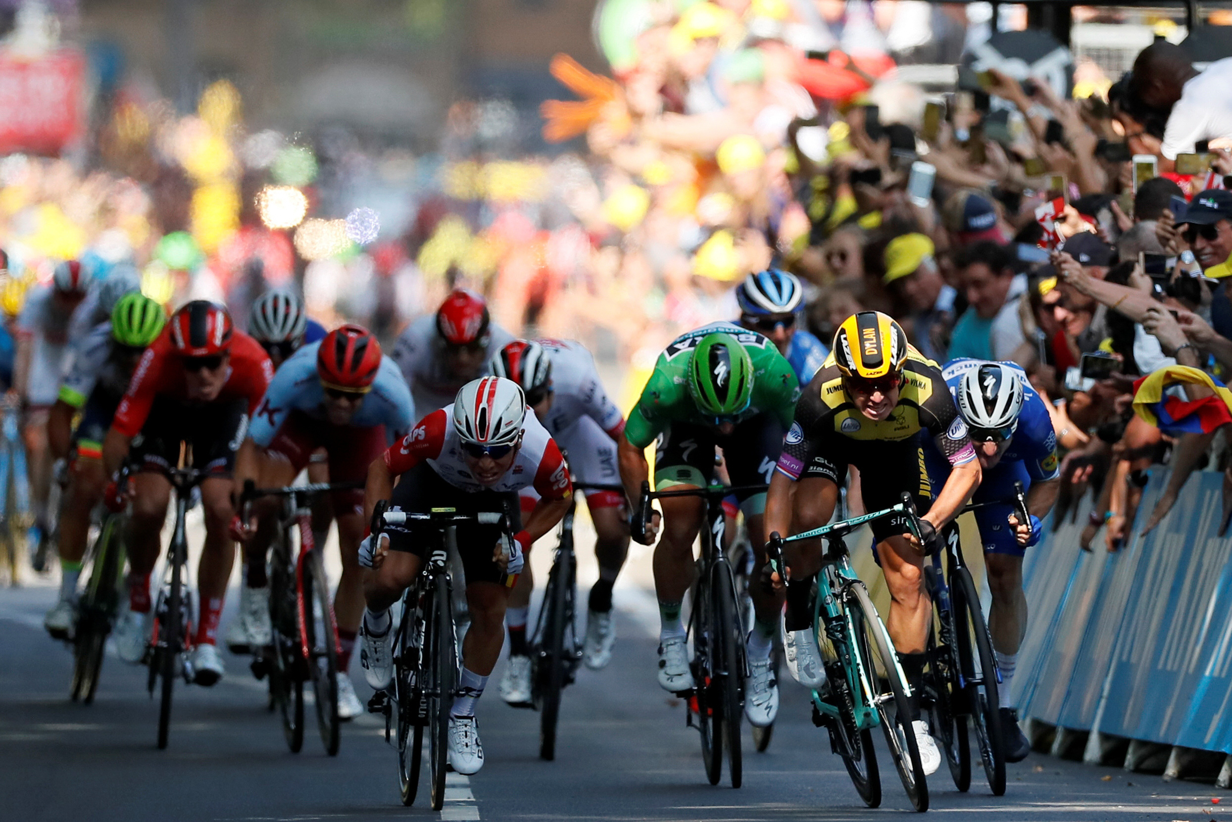 El australiano Caleb Ewan estaba exultante ayer por haber ganado su primera etapa en su debut en el Tour de Francia, lo que le permite, a sus 25 años, sumar un triunfo en cada una de las tres grandes vueltas por equipos.