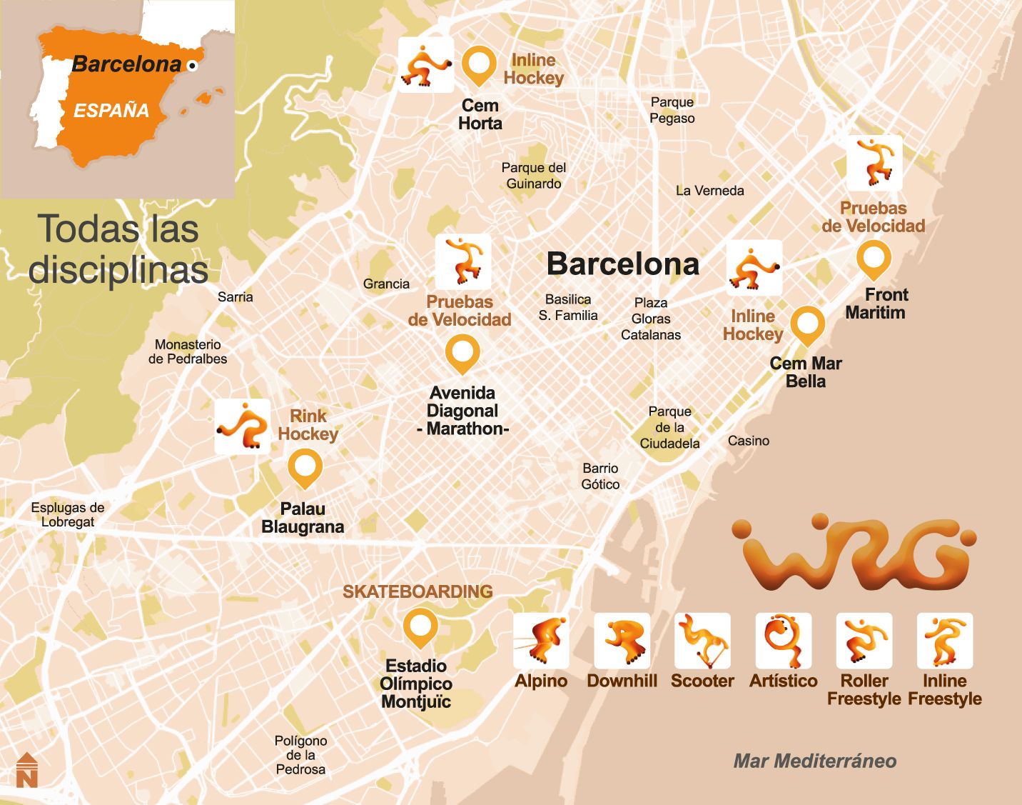Infografía general de las sedes de los World Roller Games Barcelona 2019