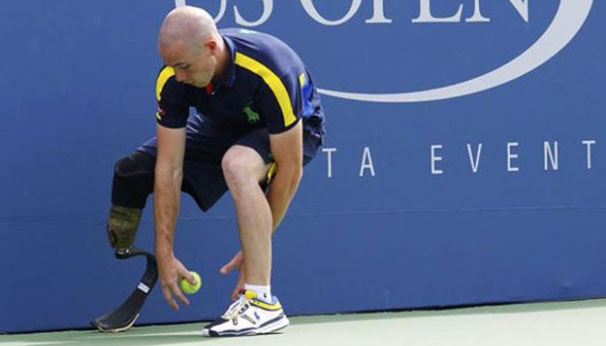 Una de figuras del día 1 del abierto de tenis que se realiza en Nueva York fue Ryan McIntyre, un alcanza pelotas, que utiliza una prótesis en sus pierna derecha similar a la del atleta sudafricano Oscar Pistorius.
