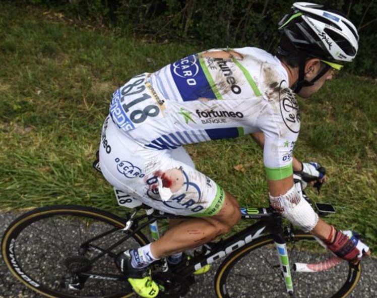 Una tímida sonrisa se dibujó en su rostro y sus ojos brillaron de manera especial, cuando se le preguntó qué pasó por su cabeza cuando sufrió una dura rodada en la novena etapa del Tour de Francia, que unía Nantua y Chambéry. Caída de la que se levantó rumiando bronca y, aun perdiendo media hora entre la atención médica y demás, logró concluir. ¿Sentiste que se venía el mundo encima? “No, me preocupé en no tener ninguna fractura y después de las curaciones seguí”, confió.