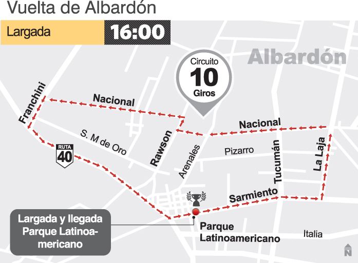 En una jornada atípica por celebrarse mañana el “Día de la madre”, la temporada de Ruta sanjuanina tendrá hoy acción. Es que se disputará la 15ta edición de la “Vuelta a Albardón”, que tendrá su inicio a partir de las 16 horas, siendo organizada por la Subcomisión de ciclismo “Unión Vecinal Manuel Belgrano”. Se espera como ha sucedido en las primeras dos fechas de la temporada, una carrera con intenso ritmo y, probablemente, un embalaje masivo de los pedaleros. Más teniendo en cuenta que la prueba se desarrollará en un circuito, al que darán un decena de giros. El kilómetro cero y la bajada de la bandera a cuadros será en el mismo sitio: el Parque Latinoamericano.