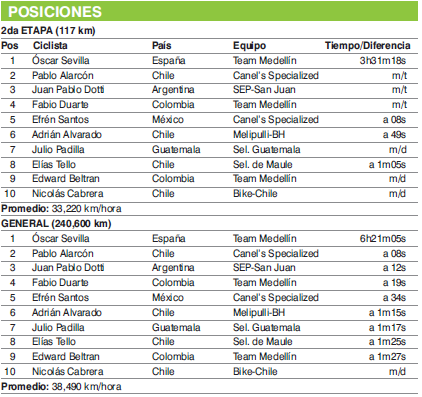 Aprovechando las prestaciones de los ciclistas que integran el Team Medellín, el ciclista español, radicado en Colombia, Oscar Sevilla se quedó con el segundo parcial de la Vuelta a Chiloé, donde el argentino Juan Pablo Dotti (SEP-San Juan) se mantuvo en la tercera colocación de la clasificación general.