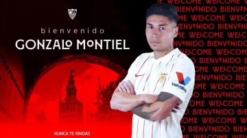"El Sevilla ha confirmado un nuevo refuerzo de cara a la campaña 2021/22 con la llegada del defensa internacional argentino Gonzalo Montiel. Procedente de River Plate, lugar donde ha desarrollado su carrera futbolística hasta la fecha, el lateral diestro firma por las cinco próximas temporadas con la entidad nervionense", publicó el club español en el comunicado.