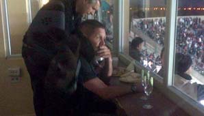 El Cholo estuvo en la cabina 6 del Gigante pocitano junto a Humbertito Grondona y siguió con mucha atención los movimientos de su hijo, quien tuvo una seria chance de abrir el marcador, pero su remate dio en el travesaño.