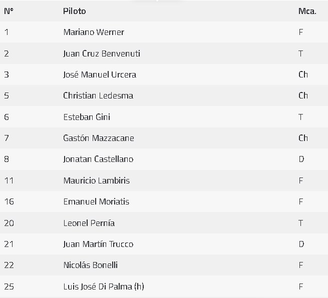 Ya se conocen los horarios para sábado y domingo y también la lista de inscriptos en TC y TC Pista, que también define su temporada. En la nómina de 38 pilotos no se encuentra el sanjuanino Facundo Della Motta, quien no estará presente ante su público y acumulará su tercera fecha consecutiva sin participar en La Máxima. Los argumentos de las ausencias pasadas fueron "motivos de planificación" y también que no pudo conseguir equipo para la atención de su auto, por eso su presencia para el año próximo es una incógnita.