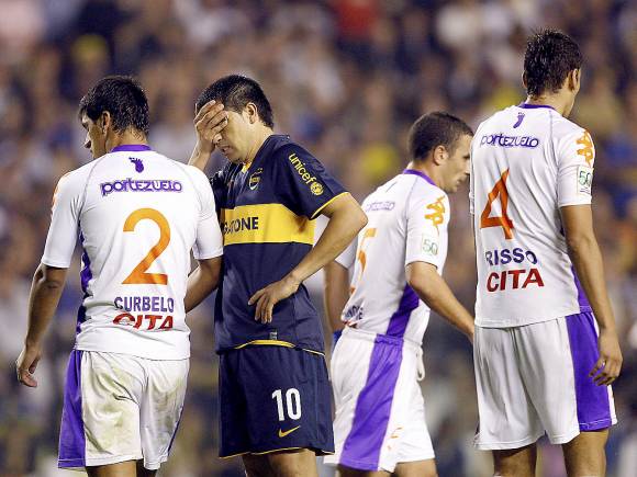 Boca comenzó marcando desequilibrio por el sector derecho a través de Palacio, quien generó dos infracciones consecutivas. Y el gol merodeó el arco uruguayo, cuando Juan Riquelme jugó uno de esos tiros libres corto para Cristian Chávez, cuyo remate rechazó el arquero Martín Silva.