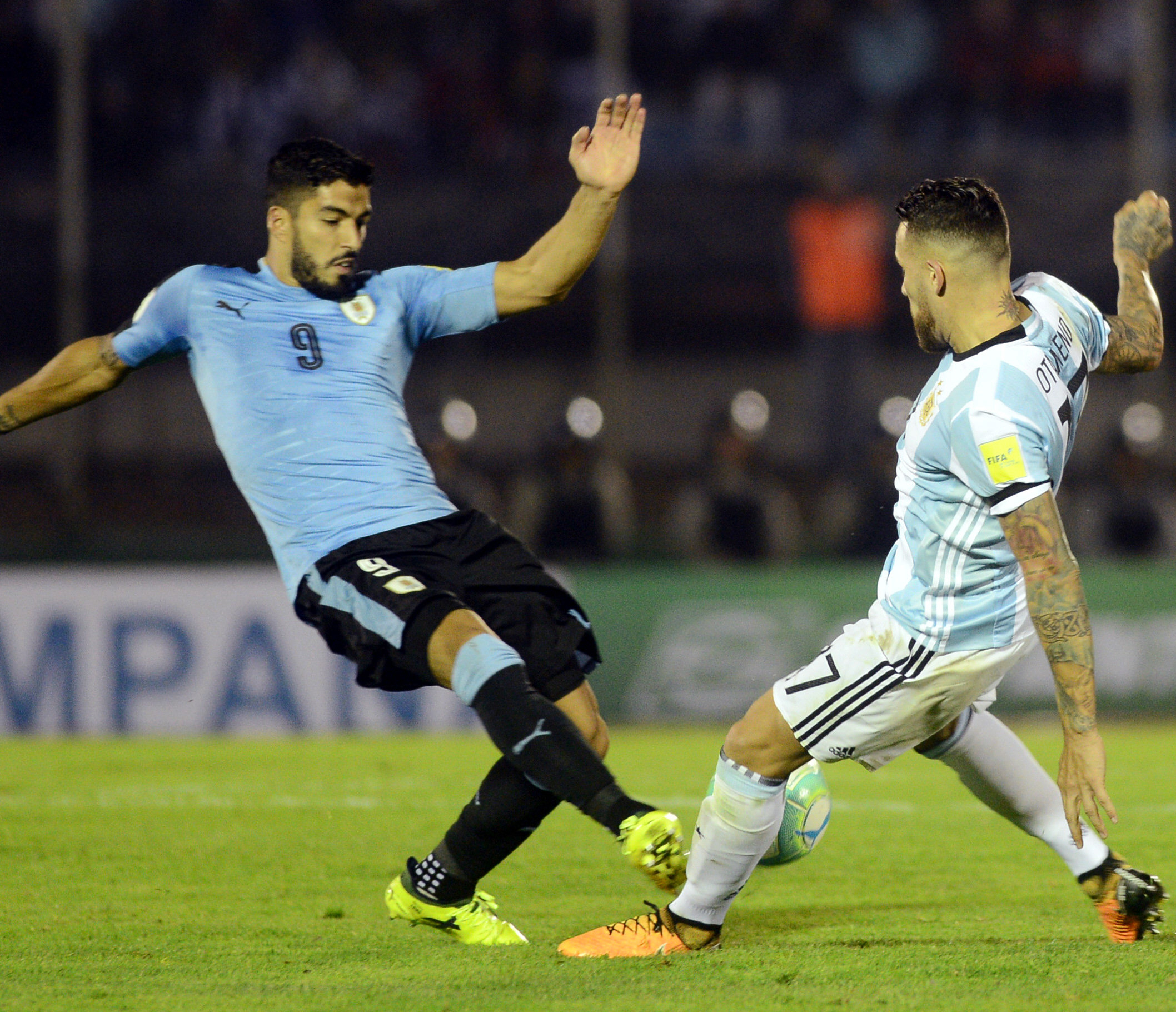 Otamendi, quien surgió de las divisiones inferiores de Vélez y actual defensor de Manchester City, de Inglaterra, recibió una violenta falta de Suárez, a los 37 minutos del segundo tiempo, y continuó en la cancha hasta el final del partido, en el estreno oficial del entrenador, el santafesino Jorge Sampaoli, que sucedió en el cargo a Edgardo "Patón" Bauza.