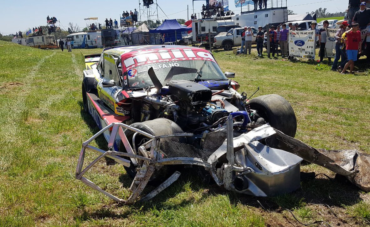 El piloto Germán Todino sufrió un fuerte accidente en la final del TC Pista, la categoría que acompaña al TC, cuando su Ford se quedó sin frenos e impactó contra un muro, tras el cual estaba el público.