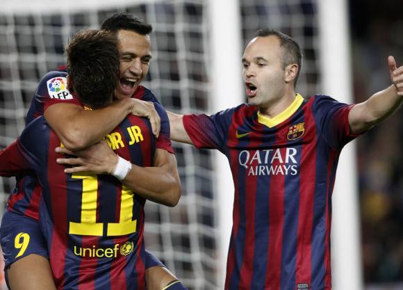 Barcelona extendió el viernes su marcha casi perfecta en la liga española de fútbol al ganar 1-0 el derbi ante el Espanyol con un tanto del chileno Alexis Sánchez, que el fin de semana había marcado otro gol muy importante en la victoria ante el Real Madrid. El triunfo dejó al campeón defensor Barca con 34 puntos sobre 36 posibles tras 12 partidos y una ventaja de cuatro unidades sobre el Atlético de Madrid, que el domingo recibe al Athletic de Bilbao. El Real Madrid, tercero con 25 unidades, visita hoy a Rayo Vallecano. Sánchez marcó a los 68 el único gol de un partido en el que Barcelona fue amplio dominador aunque sin crear demasiadas opciones de gol. Neymar sacó un preciso centro por entre las piernas de dos rivales y Sánchez conectó el balón para volver a celebrar. Además de anotarle al Madrid, el chileno marcó el martes en la goleada 3-0 sobre el Celta de Vigo. La mayor sorpresa de la noche fue que Lionel Messi no pudo marcar por cuarto partido de liga consecutivo en el que juega los 90 minutos, su peor racha en casi seis años.