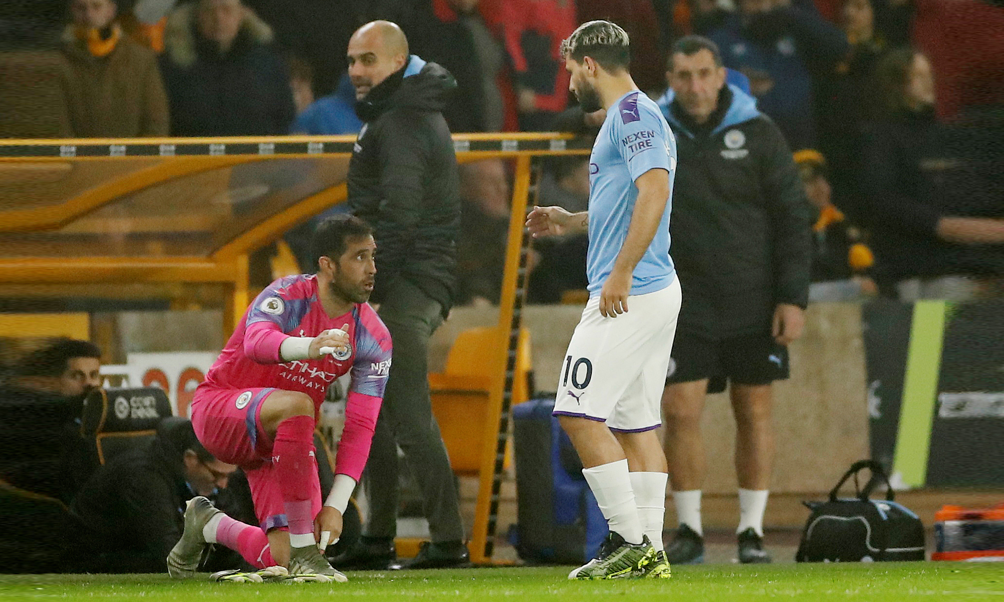 El crack Sergio Agüero retornó ayer a la titularidad, pero duró tan solo 13 minutos por la expulsión del arquero brasileño Ederson que motivó su reemplazo en la derrota de Manchester City, que ganaba por dos goles, ante Wolverhampton por 3 a 2, en un partido correspondiente a la fecha 19 de la liga inglesa.