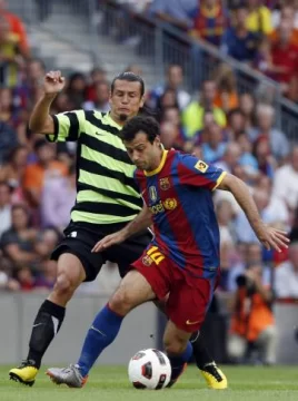 El juego del Barcelona en la primera mitad estuvo condicionado por la ausencia de Xavi Hernández. El volante participó con la selección española en los partidos contra Liechtenstein y Argentina durante la última semana, por lo que Guardiola decidió relegarlo al banco y que en su lugar estuviera el debutante Javier Mascherano.