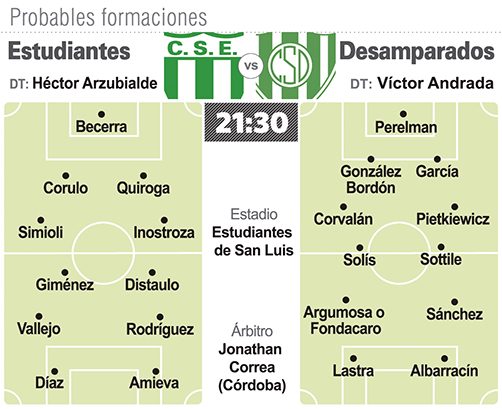 En lo deportivo, Andrada parará el mismo equipo que viene disputando los amistosos, aunque con respecto a esas presentaciones hoy ingresará Luis Argumosa en reemplazo de Carlos Fondacaro, relegando el juego ofensivo por la marca que intentará plasmar con Argumosa. Enfrente tendrá al ordenado Estudiantes que tiene al goleador Juan Manuel Amieva, delantero que pretendía sumar Andrada a Sportivo, pero por razones económicas no se llegó a dar.