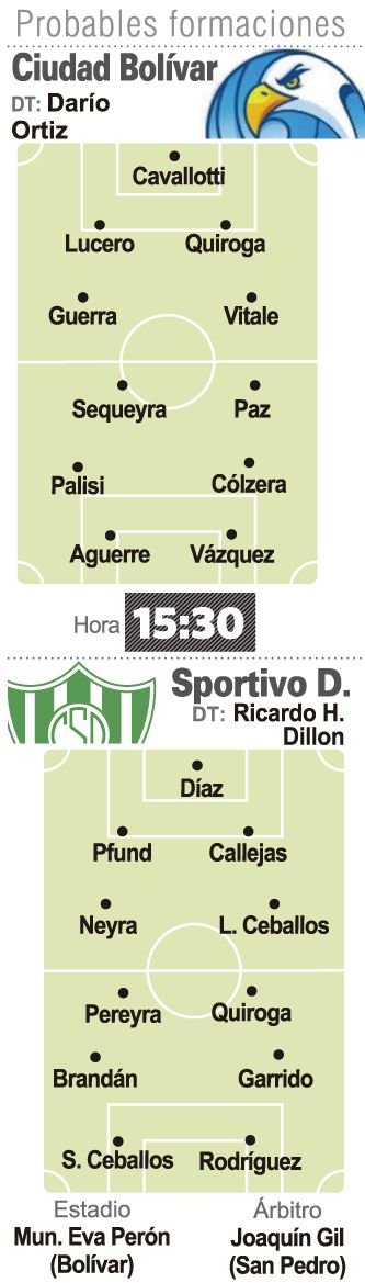 Enfrente estará el discreto presente de Ciudad Bolívar que viene de empatar como visitante ante Cipolletti en Río Negro, manteniéndose en la mitad para abajo de la tabla sin peligro de descenso por ahora, pero con alguna chance de meterse entre los 8 del Reducido. Su técnico, Darío Ortiz, repetirá la formación que sumó en el Sur con Maximiliano Cavallotti en el arco; Federico Guerra, Ignacio Lucero, Facundo Quiroga y Leonardo Vitale en defensa; Martín Palisi, Javier Sequeyra, Iván Paz y Ariel Cólzera en el mediocampo; Facundo Aguerre y Luciano Vázquez en el ataque. Para Desamparados, el margen se achica cada 90 minutos que pasan. Hoy, no puede dejar pasar otra opción para sumar triple y empezar a creer que se puede. Depende del propio Sportivo, un equipo acostumbrado a revertir historias adversas casi siempre. Hoy es Bolívar, luego vendrá una serie de desafíos a matar o morir para Desamparados que quiere quedarse.