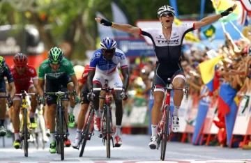 Stuyven se hizo con la victoria tras batir a Bilbao en los metros finales y en una etapa caracterizada por numerosas caídas, con varios favoritos -como Van Garderen o Dani Martin- retirados y con un enfado monumental del eslovaco Peter Sagan tras ser arrollado en los últimos kilómetros por una de las motos de la organización (ver recuadro).
