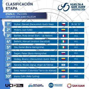 La edición 2020 de la Vuelta a San Juan tuvo su penúltimo capítulo y fue un checo, Zdenek Stybar (Deceuninck Quick Step), el que logró festejar en el autódromo El Villicum tras escaparse en los últimos metros y dejar sin chances a los embaladores que se perfilaban para mostrar sus cualidades. Por su parte, el compañero de equipo del ganador de este sábado, Remco Evenepoel, mantuvo su liderazgo y quedó al borde la consagración.