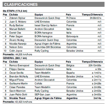 Neutralizados en Angaco por un pelotón que tiraban los hombres del equipo del líder, del BORA y Cofidis, faltando una decena de kilómetros no se escapó nadie más.