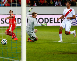 La selección suiza cerró la fase preparación para el Mundial de Brasil con una sufrida victoria por 2-0 sobre Perú, en un choque que los helvéticos tan sólo pudieron decantar a su favor en los minutos finales.