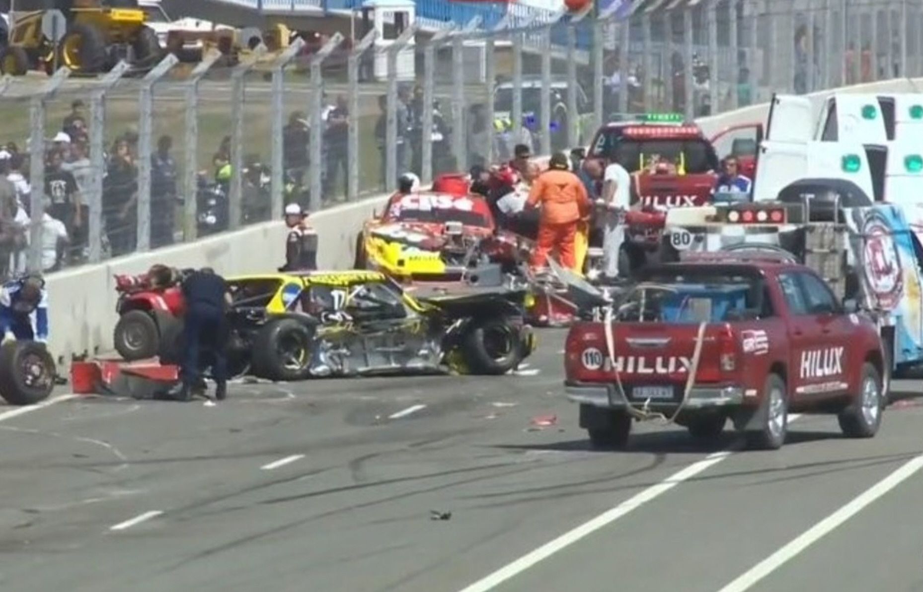 Bandera roja. Tras el accidente, la prueba estuvo neutralizado por media hora. Okulovich terminó hospitalizado.