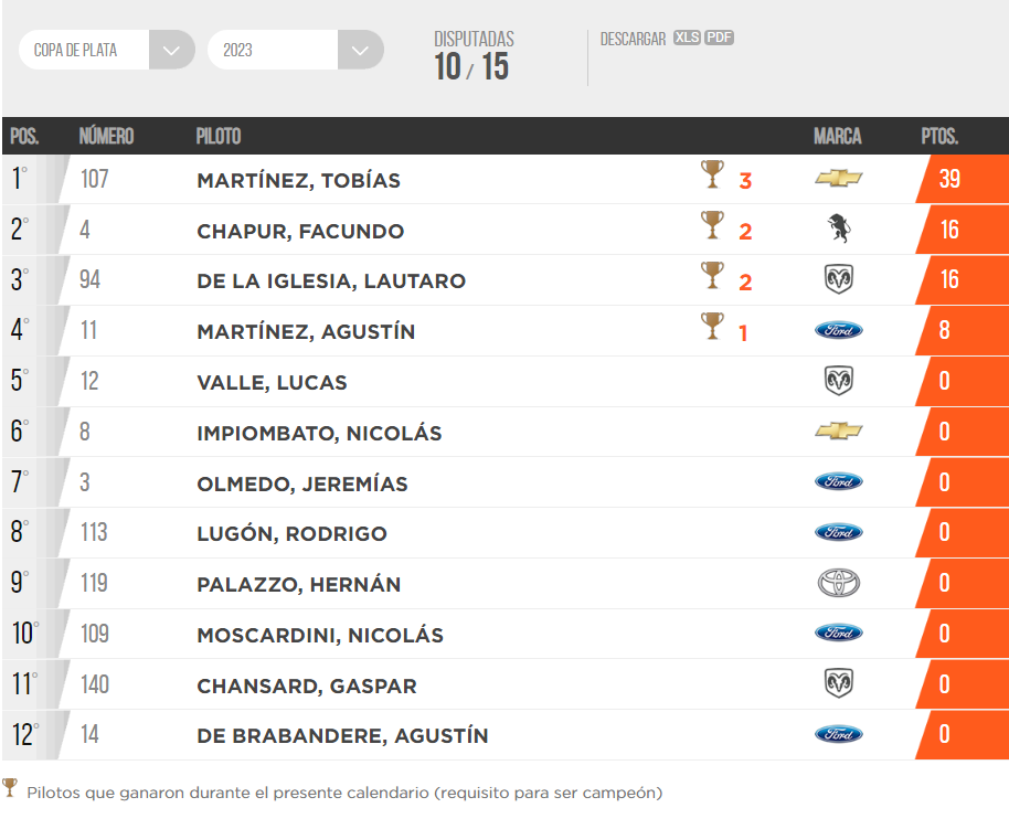 A priori, Facundo Chapur y Lautaro de La Iglesia, figuran como sus principales rivales, ya que cada uno consiguió dos triunfos este año. También arranca la Copa de Plata con puntos Agustín Martínez, por haner ganado una fecha. Los otros 8 clasificados a la carrera por el título empiezan sin puntos.