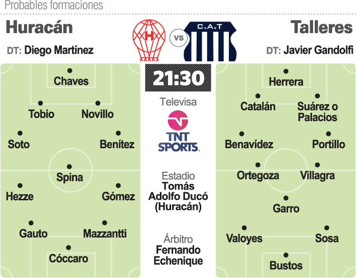 Talleres de Córdoba, único escolta de River Plate, visitará hoy a Huracán, que está en zona de descenso, con la obligación de ganar para evitar el festejo anticipado del conjunto "millonario".