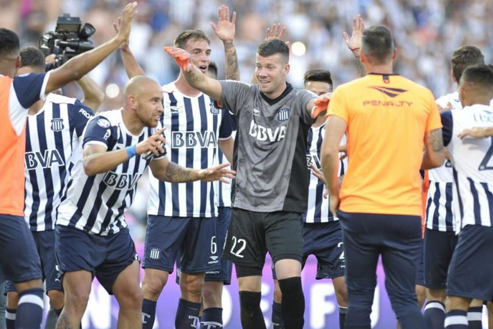 Algarabía albiazul. Todos los jugadores de Talleres dan rienda suelta a su alegría tras imponerse en el partido que todos sus hinchas quieren ganar. Uno de los más contentos es el arquero Herrera que fue citado para integrarse a la Selección argentina.