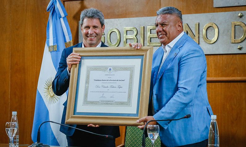 En una jornada repleta de emociones, Claudio Tapia comenzó la jornada con un reconocimiento más que especial ya que el gobernador de la provincia, Sergio Uñac, lo distinguió como Ciudadano Ilustre y también se lo homenajeó con una medalla, como persona destacada que visitó la Casa de Gobierno.