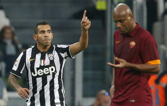 El delantero argentino, Carlos Tevez, convirtió ayer dos goles de penal para Juventus, que superó a Roma por 3-2, como local, y se convirtió en el único puntero de la Liga italiana, en el marco de la 6ta fecha. Tevez abrió el marcador, de penal, a los 27 minutos, luego el conjunto capitalino lo dio vuelta a través de Francesco Totti, por la misma vía, y del argentino Juan Iturbe, a los 32 y 44, respectivamente, pero antes del descanso el ’Apache’ volvió a marcar desde los once metros para la igualdad transitoria. No obstante, a 4’ del final el defensor Bonucci hizo el gol para el triunfo agónico del tricampeón italiano que ahora le sacó tres puntos de ventaja a su rival y principal perseguidor.