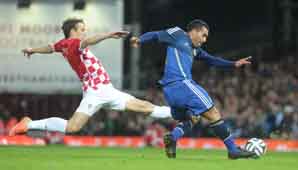 Durante todo el primer tiempo, las miradas estuvieron en el banco, ya que el once que paró el técnico argentino no tenía a Carlos Tevez como titular, sino que formaba con Romero; Zabaleta, Vergini, Fazio, Ansaldi, Mascherano, Banega, Pérez, Messi, Agüero y Di María. Influyó, claro, la sorpresiva pasividad de Argentina, que tuvo su castigo en el arranque del partido. Después de algunas aproximaciones, Croacia consiguió el primer gol. Kovacic se aprovechó de la floja respuesta defensiva de la Selección, Mascherano no se la pudo sacar y el croata llegó hasta el vértice del área y abrió a la izquierda para Sharbini, quien de primera puso el bochazo cruzado de derecha para festejar el 1-0 bajo una lluvia cada vez más intensa.