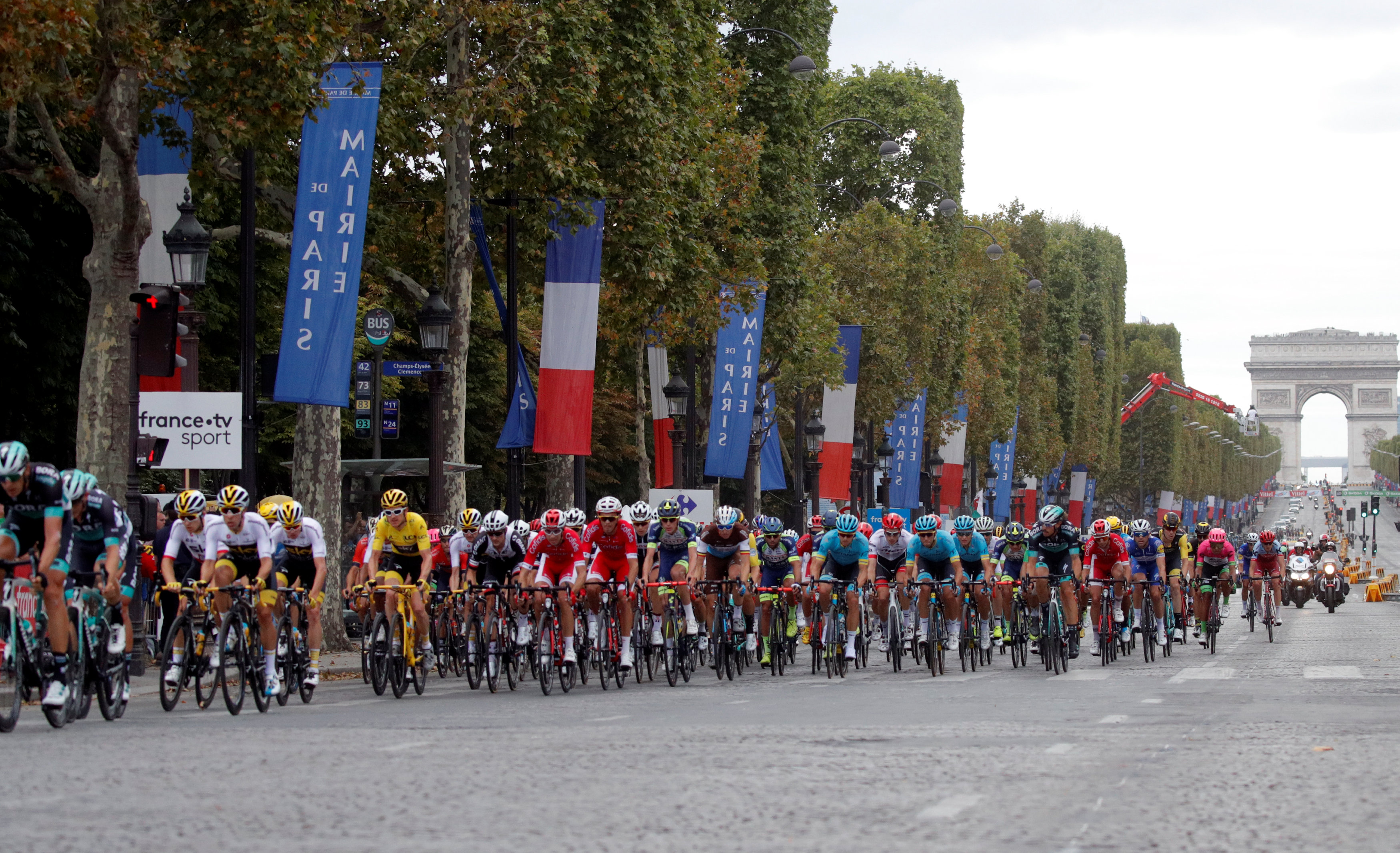Una postal. El grueso del pelotón de los participantes del Tour de Francia atravesando los Campos Eliseos. Con el Arco del Triunfo de fondo. Una clásica de verdad.
