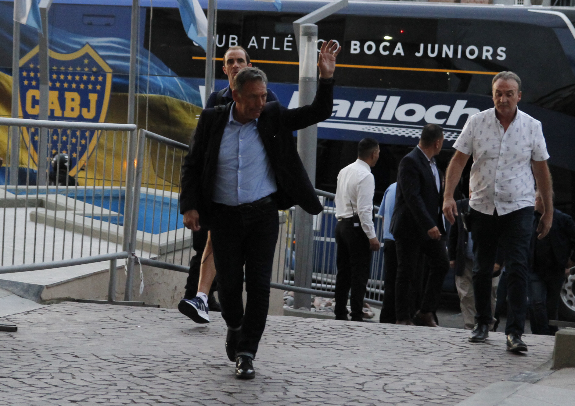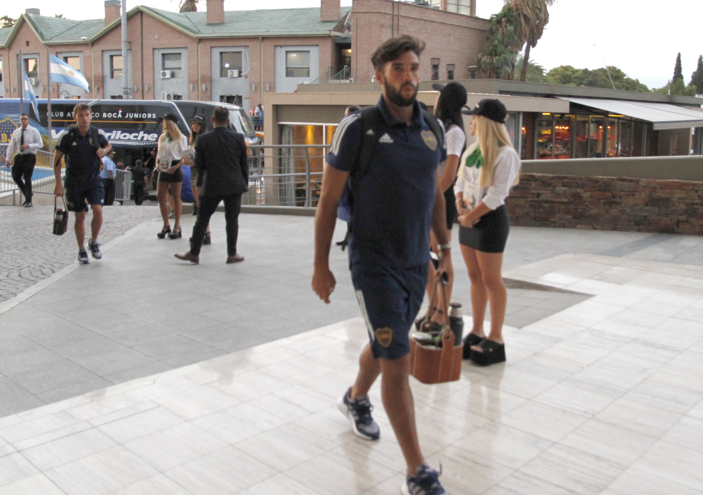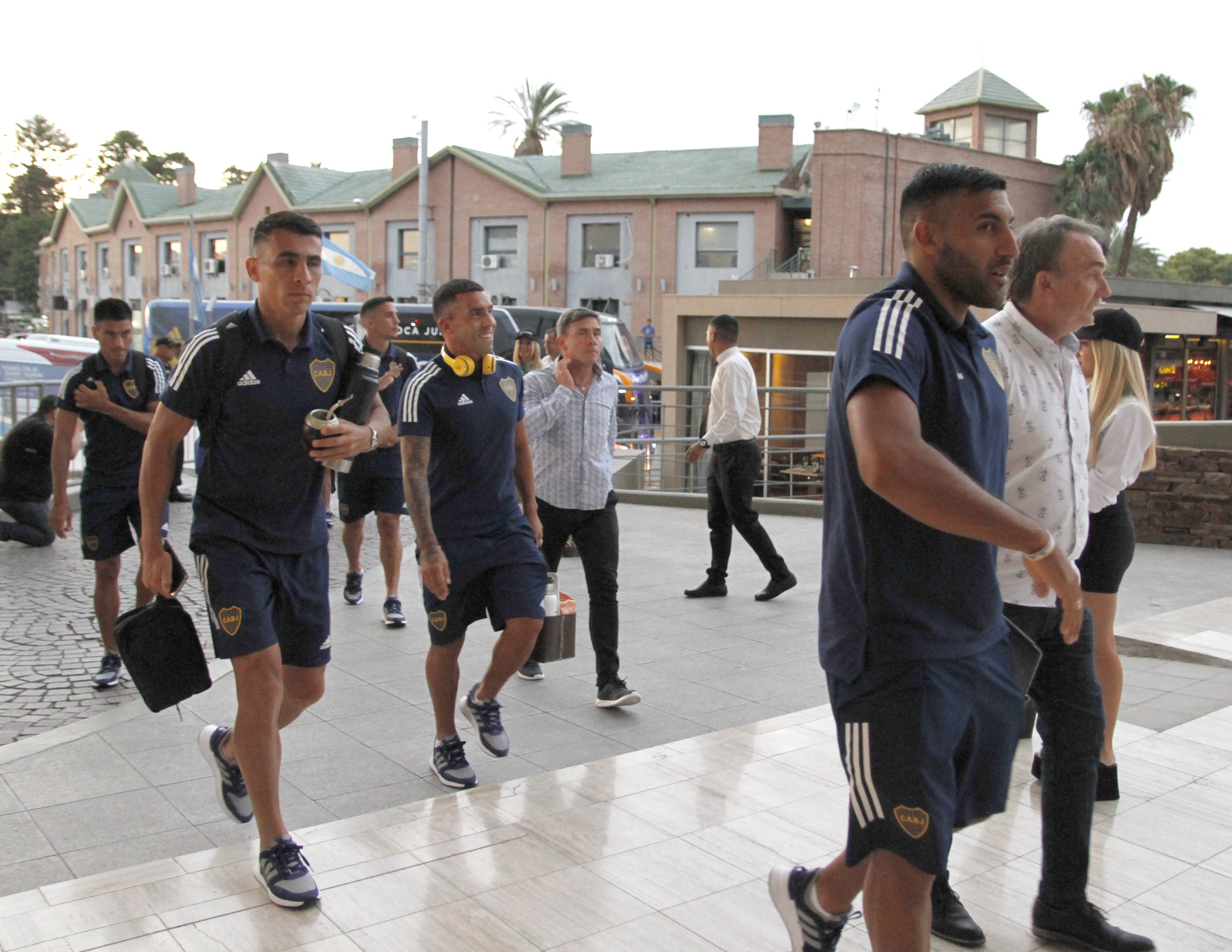Ayer, a las 20.10, el avión que trajo a la delegación xeneize a la provincia tocó suelo en el aeropuerto Domingo Faustino Sarmiento. Luego de un rápido traslado hasta el Del Bono Park, jugadores, cuerpo técnico, dirigentes y colaboradores fueron ingresando al hospedaje local mientras recibían el clamor popular de los más de 250 hinchas que fueron a esperarlos. Al momento de los aplausos, el más ovacionado resultó Carlos Tevez, quien seguirá en Boca al menos hasta mitad de año. Pese a algunos cuestionamientos en las redes sociales, está claro que del plantel actual el Apache es el más reconocido por los fanáticos. A nivel de aplausos, el segundo en preferencia fue el "dueño de casa", el lateral Emmanuel Mas. El zurdo, igual que Carlitos, respondió con un gesto de agradecimiento las muestras de cariño. Se espera que esta noche el ex San Martín sea titular ante el Albo peruano. Uno de los primeros en descender del colectivo fue el comandante del barco desde el banco de suplentes: Miguel Russo. El entrenador, a sus 63 años, tendrá la segunda oportunidad en Boca apuntando a repetir la gloria obtenida en el 2007 con la Copa Libertadores, la última del club hasta ahora y que tuvo a Román Riquelme como máximo artífice. Justamente el encargado ahora del Fútbol del club anoche no arribó a la provincia y según comentaron desde el club es "poco probable" que hoy diga presente en el Bicentenario. Su mayor ocupación hoy pasa por conseguir nuevos jugadores para el plantel y por eso se quedaría en Buenos Aires para observar por televisión el estreno del equipo. La estadía de Boca en San Juan se extenderá hoy hasta apenas un par de horas luego del encuentro ante Universitario ya que regresará en vuelo chárter a Capital Federal. Una situación similar se dará en la previa al choque del domingo contra Paranaense de Brasil. En tanto, a su llegada, el capitán de Boca, Carlos Izquierdoz, se refirió a la importancia de este inicio de ciclo: "Lógicamente que un cambio de dirigencia, de entrenador y también de algunos compañeros hacen que las expectativas cambien. Nos sentimos con mucho entusiasmo y trabajando duro como debe ser en esta etapa", sostuvo.