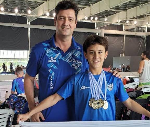 Fue tan prolífica la participación del sanjuanino en Perú, que tras registrar 2m26s52 en los 200 metros combinado, una de las tantas pruebas que ganó, recibió un premio por marca técnica. Básicamente, es una distinción que se entrega a nadadores que estuvieron cerca de lograr récord, basada en un comparativo porcentual de registros de la World Aquatics (antes FINA, la federación internacional).