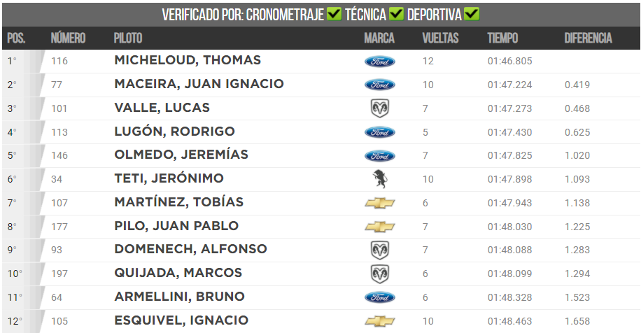 La actividad continuará mañana sábado. A las 11 se realizará el sexto y último de los ensayos y desde las 15 comenzará la clasificación que ordenará los lugares de partida de las 3 series del domingo por la mañana (desde las 9,55). La final que defina al campeón, empezará a las 12,55.