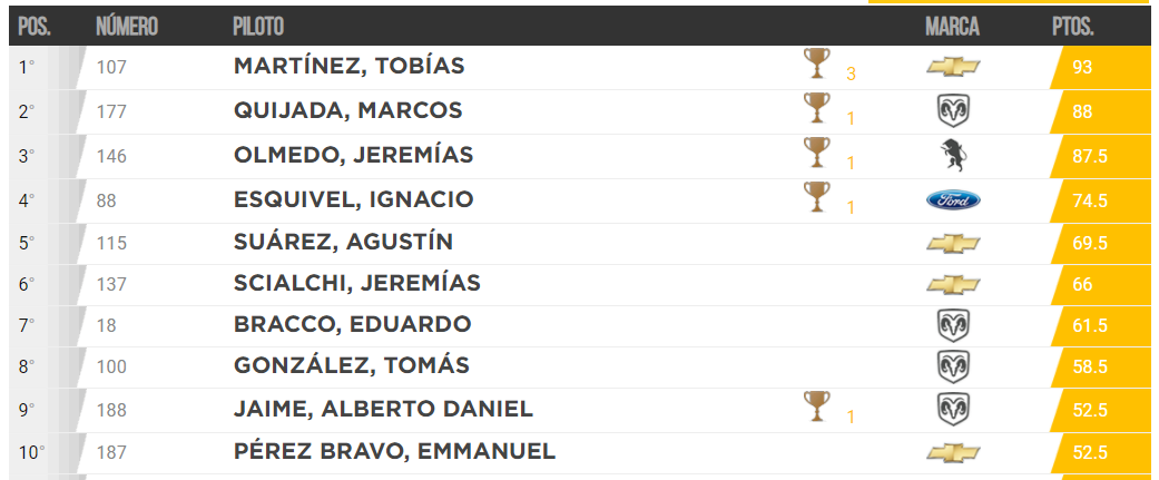 Luego del triunfo de la carrera anterior, el piloto sanjuanino alcanzó la punta de la Copa Coronación de Plata aunque también significó 40 kilos más de lastre para el Chevrolet#107 que le prepara la estructura de Las Toscas Racing.