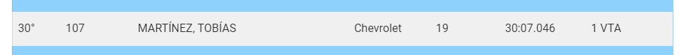 Adelante Fritzler encadenaba una vuelta rápida detrás de otra para escaparse en la cima, a tres segundos del paranaense del Martínez Competición, que a su vez transitaba con comodidad en la segunda posición, favorecido por la lucha entre Álvarez y Valle, quienes dirimían la última posición del podio.