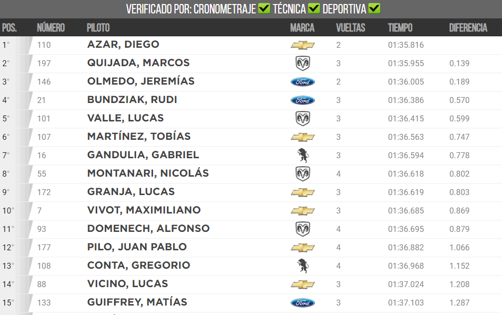 El sanjuanino mejoró en 915 milésimas en completar su mejor giro y finalizó en el sexto puesto, a 747 milésimas del poleman, Diego Azar.