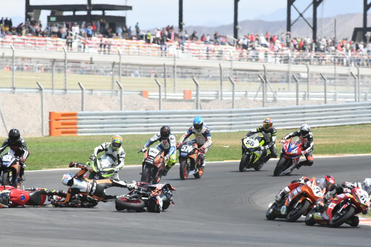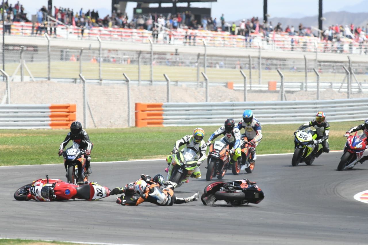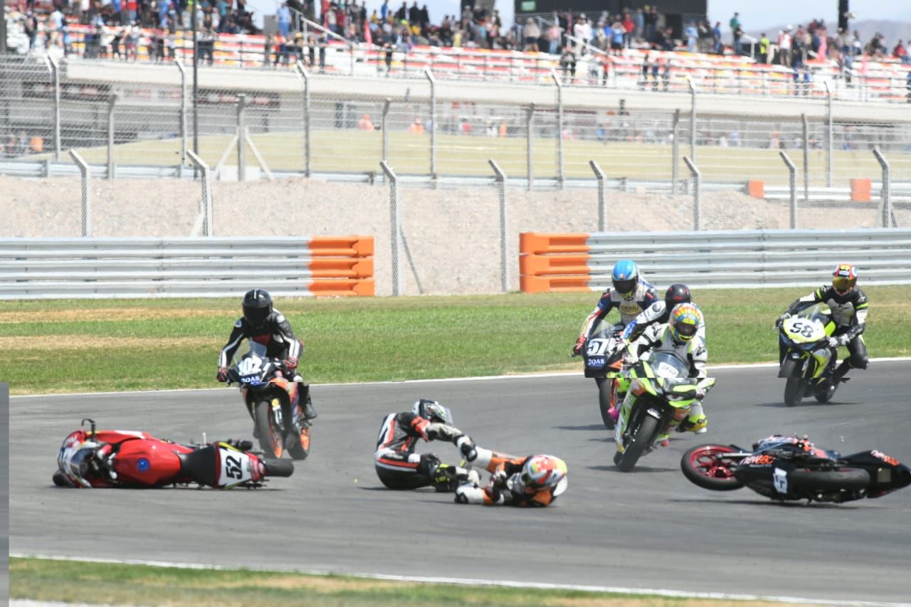 Se trata de Luis Mercado, que piloteaba la máquina #52. En una de las curvas del circuito El Villicum, la Yamaha del sanjuanino se tocó con otra moto y ambos fueron a parar al piso, mientras los otros competidores venían a toda velocidad atrás intentando esquivar a los pilotos y las motos.