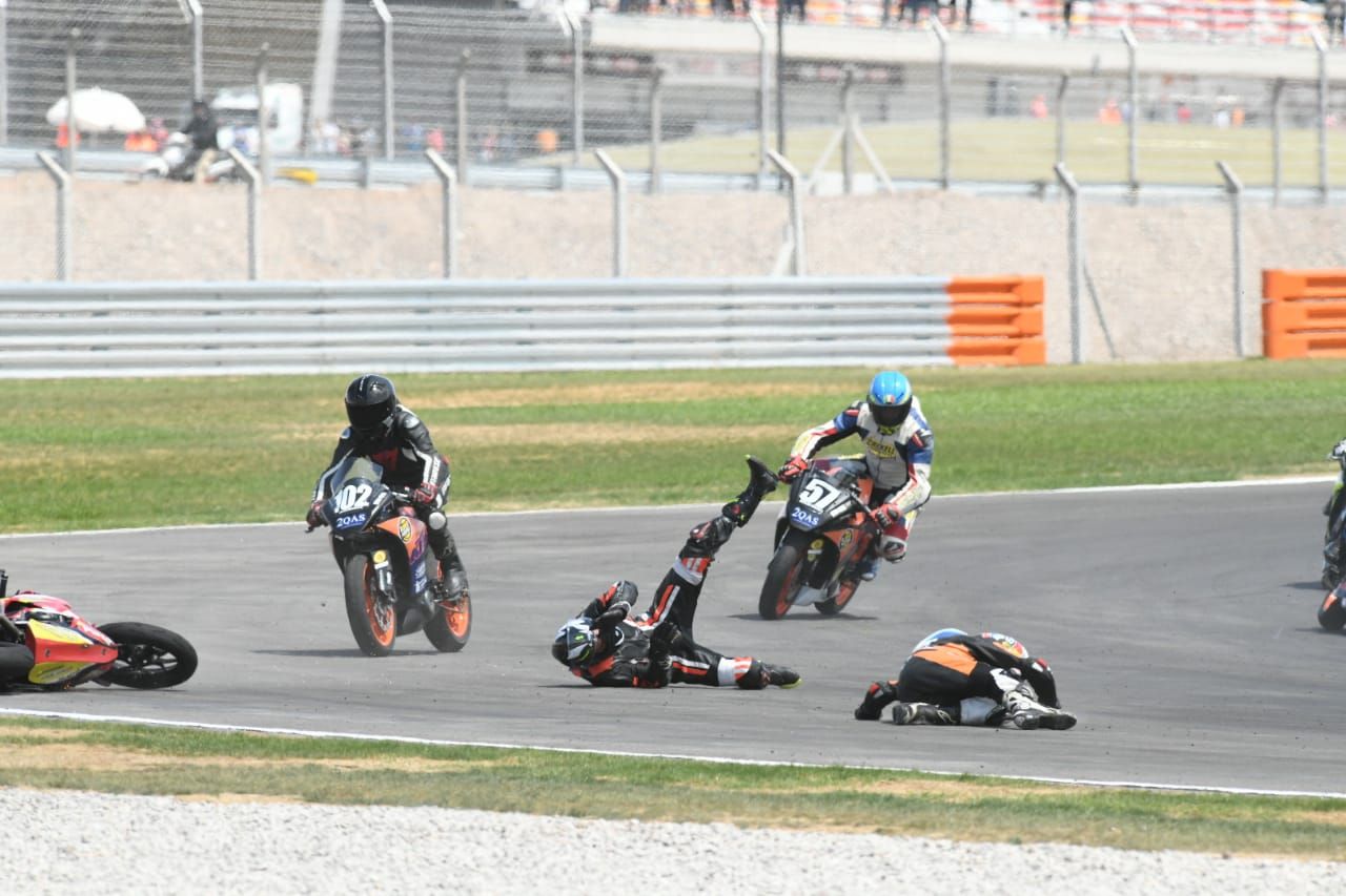 La carreras de motos tienen escenas que son atractivas para el público y dramáticas para los pilotos: las caídas. En la categoría que abrió el ruedo este sábado, la GP3 Américas, ocurrió una accidente que tuvo a un sanjuanino como protagonista.