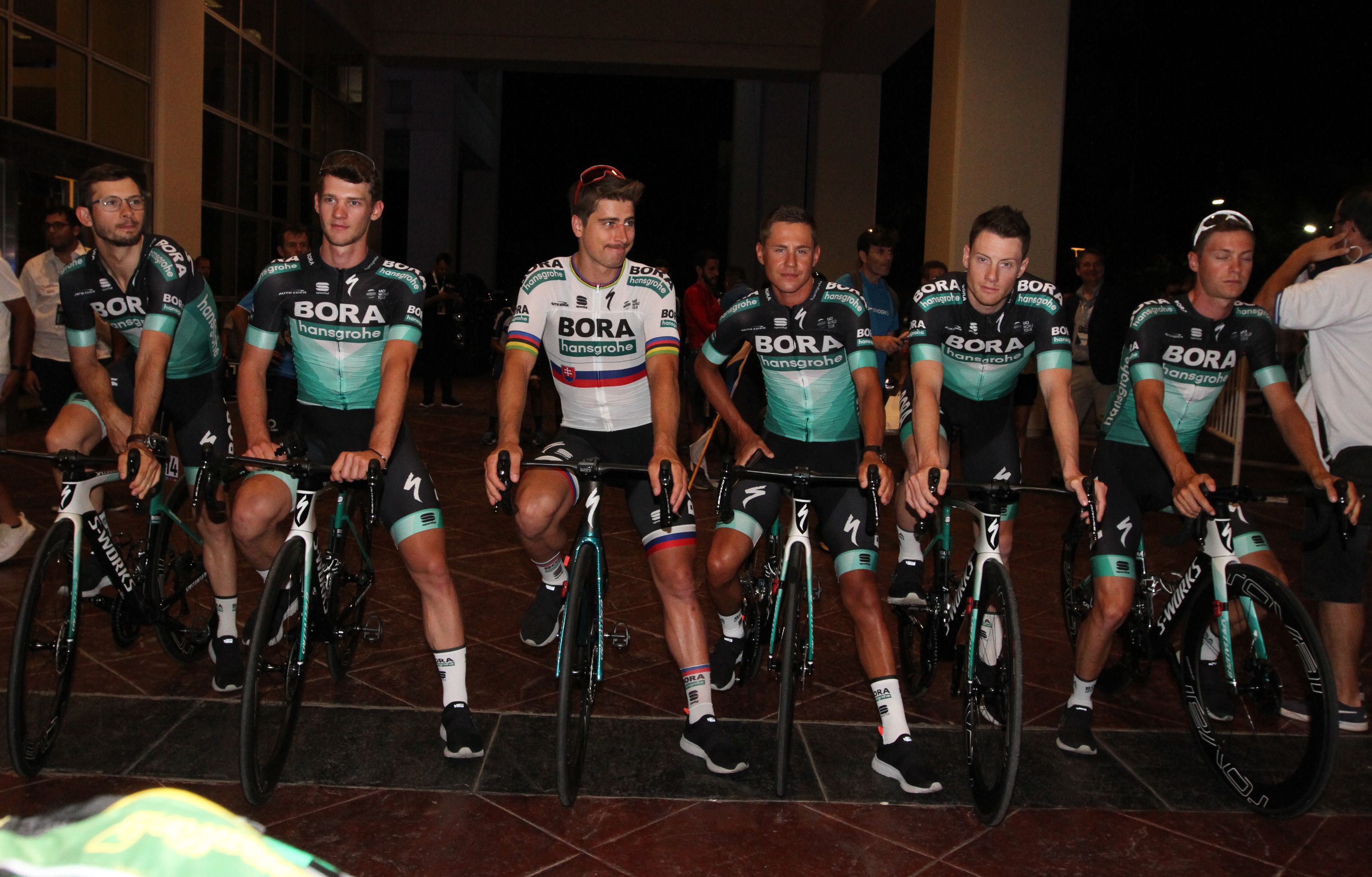 11- Peter Sagan, 12- Sam Bennett, 13- Félix Grosschartner, 14- Chistoph Pfingsten, 15- Pawel Poljanski y 16- Erik Baska