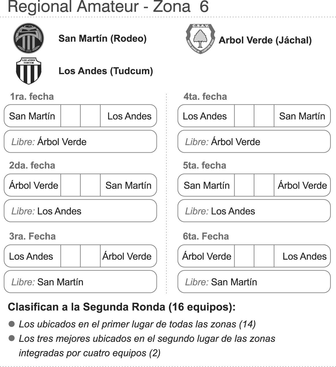 Casi en una alocada y frenética carrera contra el tiempo, Árbol Verde de Jáchal trata de armarse de la mejor manera para llegar al comienzo del Regional Amateur. Lo ayuda que en la primera fecha de la Zona 6 tendrá fecha libre y una semana extra para terminar de ajustar detalles. Sin refuerzos confirmados y solamente la decisión de rearmar el cuerpo técnico, el equipo verdolaga de Jáchal sabe que está en desventaja con el resto.