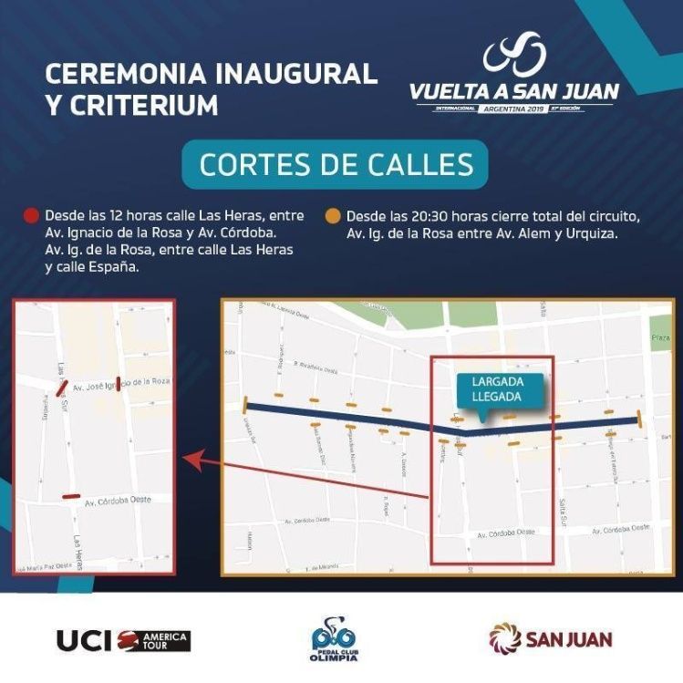 Una vez que finalice, alrededor de las 22, se pondrá en marcha el Critérium “Unión Suramericana de Ciclismo”, con el siguiente recorrido: comenzará en Ignacio de la Roza, entre Las Heras y España y los ciclistas viajarán por dicha avenida hacia el este hasta Alem.