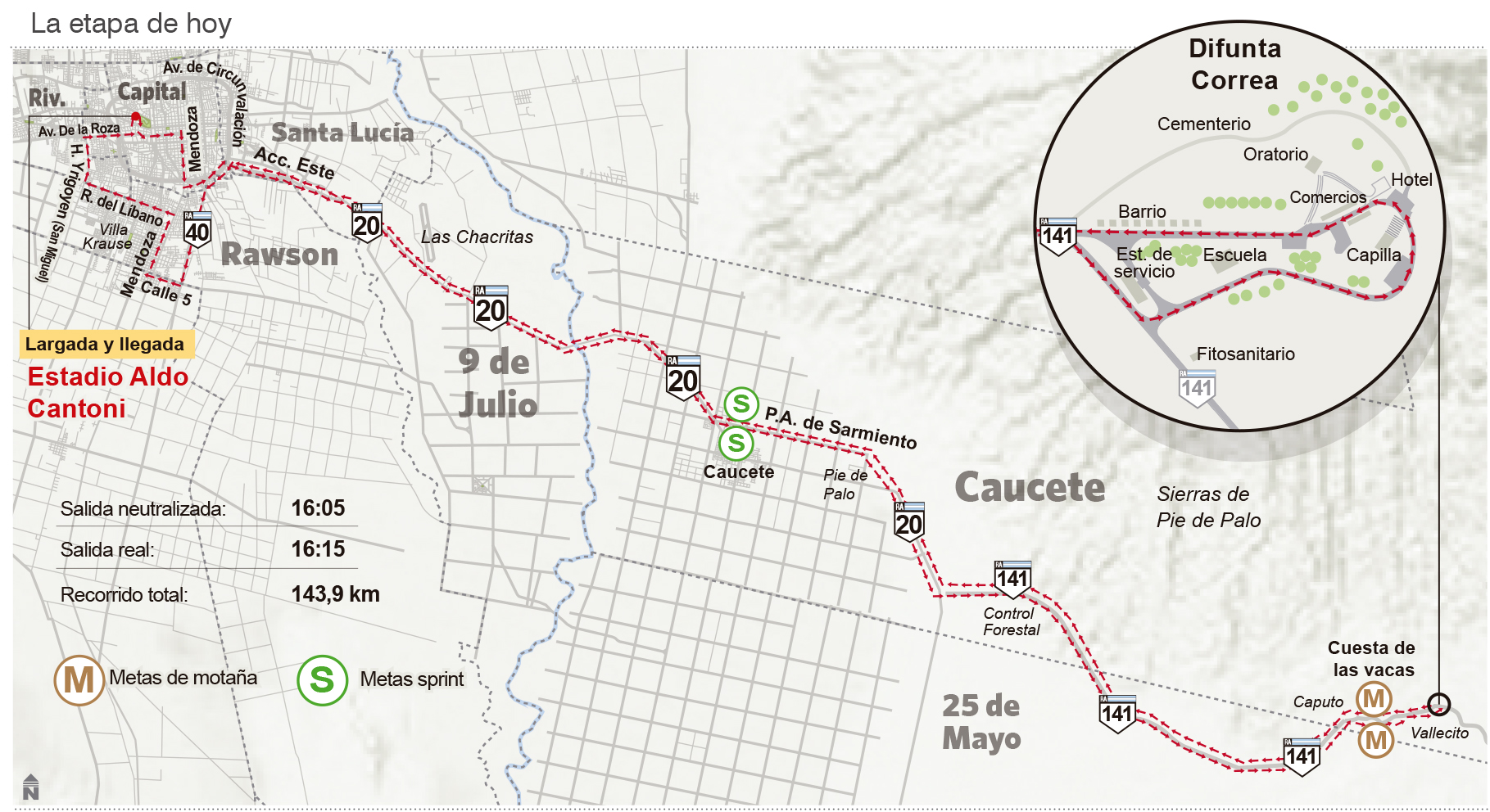 Recorrido: serán 143,9km desde la Ciudad de San Juan hasta la Difunta Correa y su regreso.