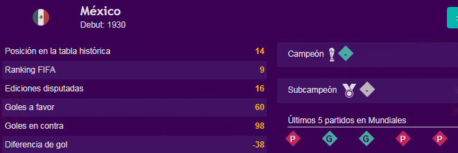 México disputó 16 mundiales y sus mejores producciones fueron hasta cuartos de final, en 1970 y 1986, ambos como organizador.