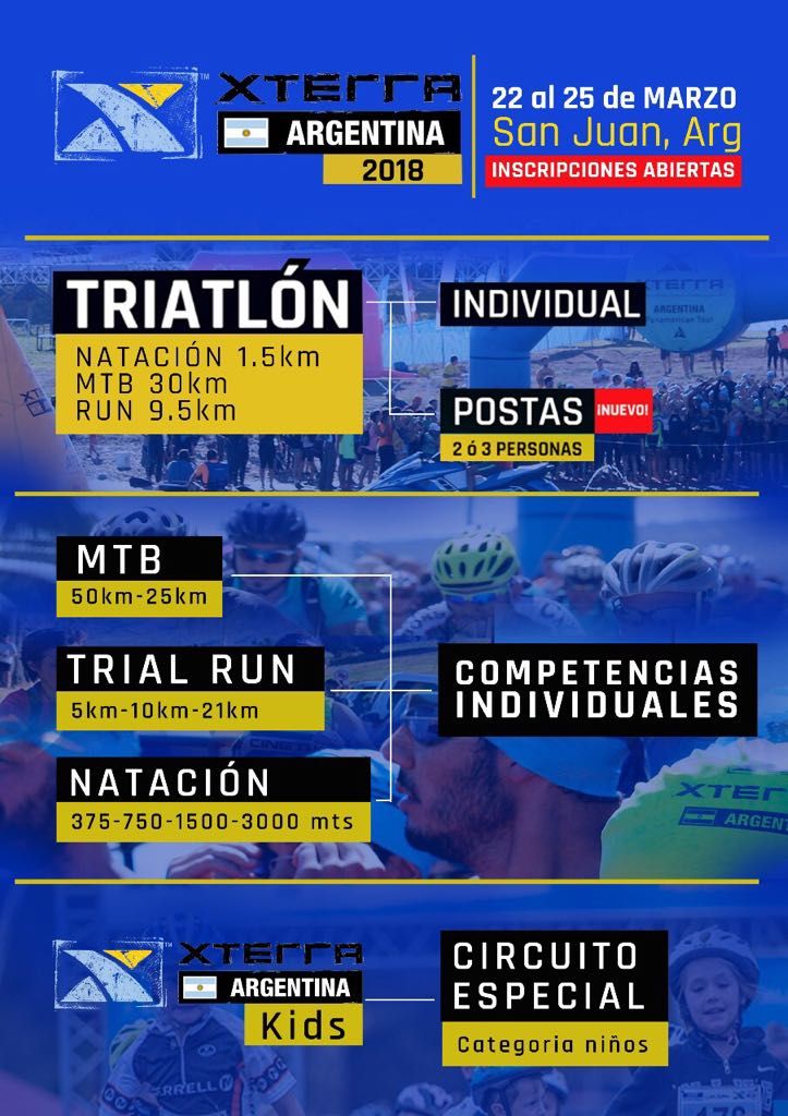 Por tercera vez San Juan será sede del triatlón que clasificará al Mundial de Hawai. Se llevará a cabo del 22 al 25 de marzo organizada por Argentina Tri Events (ATE). Hasta el momento cuenta con más de 15 provincias inscriptas y 10 países diferentes. Toda la actividad se centrará en el Dique de Ullum.