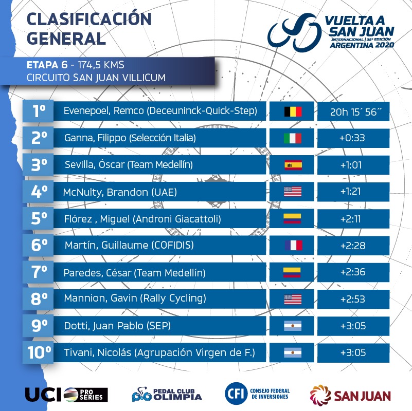 Diario de Cuyo | HOME | Pasión Deportiva | Vuelta a San Juan 2020 | penúltima carrera Todos los líderes luego de culminar la sexta etapa Por Redacción Diario de Cuyo 01/02/2020 · 0:00 Foto: Marcos Carrizo – DIARIO DE CUYO Vuelta a San Juan 2020 Ver los comentarios ›